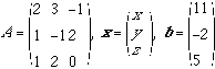 のように行列A,ベクトルx, bを定めると,Ax=bで表されます.このとき,Aとbをくっつけた下のような行列を定義します.