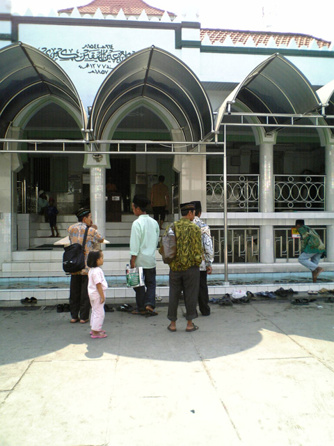 2005年から3年続けて,夏にインドネシア・スラバヤ工科大学を訪れています. 私の研究室で学位をとり,現在はスラバヤ工科大の先生をしているAgus Zainal Arifinさんに,スラバヤ滞在中の休日には町を案内してもらっています.彼は大変まじめなイスラム教徒で,彼の案内で,いくつかのモスクを訪れました.このページでは,われわれがインドネシアを訪問したとしても,あまり観光に訪れることはない,モスクのようすをご紹介します. また,インドネシアで初めて知った果物が,シルサク(sirsak)です.初めての訪問のときに,私があまりに気に入っていたので,翌年からは大学の方に常にシルサクジュースを勧められるようになりました.最近は日本でもたまに見かけるようになった,この果物もこのページでご紹介します. ※写真をクリックすると別ウィンドウで拡大します. モスク2005年,訪問先の大学の人々との旅行中に立ち寄った観光茶園にある,イスラム教のモスクです.立ち寄ったのがちょうど「マグレブ」の時刻にあたったので,大学の人たちはここでお祈りをしていました. このようなモスクはいたるところにあり,出先で祈りの時刻になった場合に立ち寄ることができます.また,もっとも重要な「マグレブ(日没)」の祈りの時刻には,テレビやラジオで,祈りを促す呼び声(アザーン,「日の出」のページ参照)が放送されます. 同じく2005年に訪れた,インドネシア・スラバヤ市郊外にある大モスク"Masjid Al-Akbar"の外観です.モスクは,キリスト教会とは違って祭壇などはなく,いわば「巨大な大広間」です.中に入ると,床や壁は完璧に磨き清められ,身の引き締まる思いがします.そこにいた現地の人に,その感想を伝えると,「清浄もイスラムの一部です」という答が返ってきました. 2007年に訪れた,あるモスク(左,中)と霊廟(右)です.モスクで祈る際には,手足を清めます.このモスクでは,広間の前にプールがあり(左の写真),そこで足を洗うようになっています. シルサク2005年のインドネシア初訪問で,お気に入りになってしまった果物であるシルサクです.日本名はトゲバンレイシ(棘蕃茘枝),英語ではsoursopといいます.また,南米で葉や根が薬として使われている「グラビオラ」も,同じ物(学名Annona muricata)です.シルサクのジュースは真っ白でとろみがあり,甘み・酸味とも適度で,大変美味でした. 上の左の写真のように切ったり,右のように皮を剥いてみると,果肉には繊維が非常に多く含まれていることがわかります.このため,生食するよりも,ジュースにすることが多いそうです.甘すぎず,繊維が多く,現代の日本では好まれそうな果物ですが,いかがでしょうか.