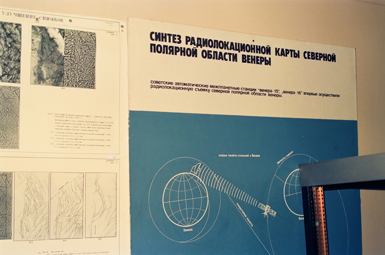 *) Please refer a page in Japan Train Lines & Stations. The memorial museum of cosmonautics was nearby the Exhibition of Achievements of the National Economy (Выставка Достижений Народного Хозяйства, ВДНХ/VDNKh) in the north east part of the City of Moscow. The photo in the right shows the entrance gate of the VDNKh, and the right shows the Fountain "Friendship of nations (Дружба народов)"at the center of the VDNKh. The communist goverment seemed to succeed the tradition of European dynasties to show their authority by gorgeous constructions like the Palace of Versailles. The VDNKh was reorganized to the All-Russian Exhibition Centre (Всероссийский Выставочный Центр, ВВЦ/VVC) and still open now. The gate and the fountain are alive even after the collapse of the communist government; The web site of VVC uses the photos of the fountain and the statue of farmers on the gate. The VDNKh also had the Cosmos Pavillion exhibiting rockets and the docking of Apallo and Soyuz Spaceships. The epigraph on the wall beyond the spaceships, in the photo in the right, says "Glory for heroes of socialist labor (Слава героям социалистического труда)." The photo in the left shows Gagarin Monument at Gagarin Square in Moscow. Yuri Gagarin, the first astronaut of the world, has always been a hero in the Soviet era and also after the collapse of the Soviet Union. The monument is of course alive now. The photo in the right shows a calendar featuring Gagarin, which I bought at a kiosk in front of the memorial museum of cosmonautics. The text in the left of the photo of Gagarin says "April 12, 1961 — the first flight of human being to the space." I remember that I was in the same flight with an orchestra of Irkutsk on the way back to Japan at my stay in Moscow at that time, and a member of the orchestra said to me with a lamentation, "What remain in the Soviet Union are only art and cosmos." I stayed at that time for my research work in the Digital Optics Laboratory of the Institute of Information Transmission Problems of the USSR Academy of Sciences. This laboratory is known as the digital processing of the first ground image of the Venus captured by the Soviet starship Venela. The above photo shows a panel illustrating a technology in the Venus exploration project in the laboratory. The photos in 1990 was taken using Minolta SR-T101, Rokkor 50mm lens, and Fuji color negative film, and digitalized at a DPE shop in 2008. The color was digitally justified since the film was discolored. |