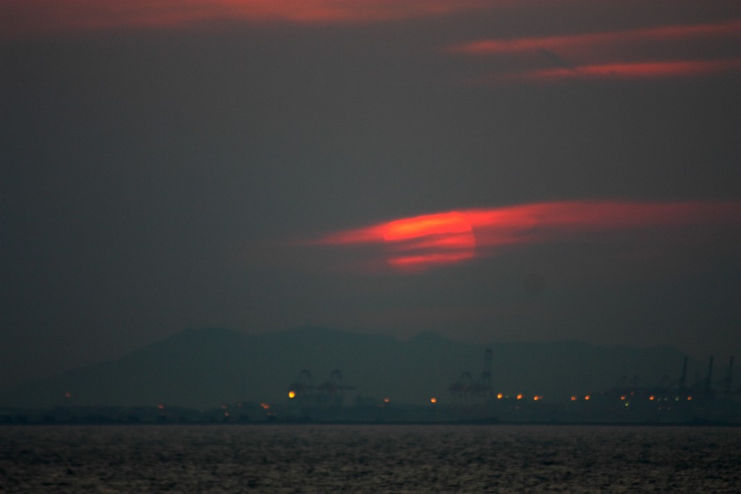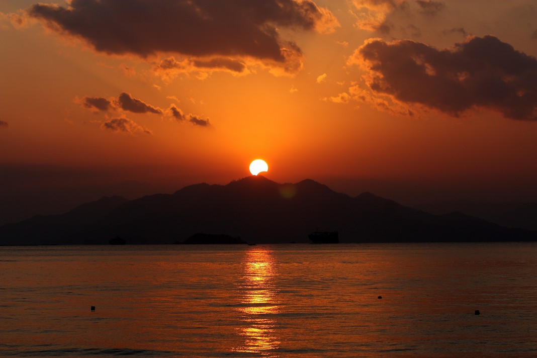 私の故郷の大阪市は,西側が海で開けていて,しかも中心部が南北に伸びる台地上にあるため,夕陽の景色が美しい土地です.今回は,大阪で撮影した夕陽の写真と,広島湾で撮影した2010年1月の日没帯食の写真をご紹介します.